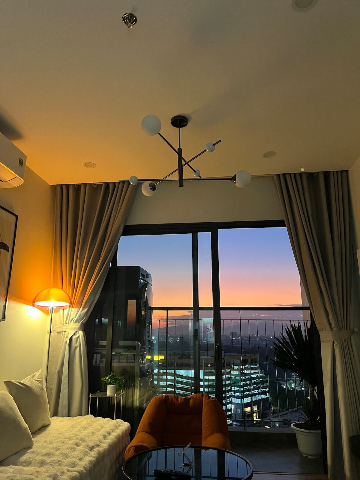 Căn hộ được thiết kế sang trọng, hiện đại với không gian mở ,tầm nhìn thơ mộng cả về hồ và thành phố lung linh.. Phòng bếp đầy đủ tiện nghi với các dụng cụ nấu ăn cơ bản, lò nướng tiện lợi, sẵn sàng cho những bữa ăn ngon miệng. Bạn có thể thư giãn với TV màn hình lớn có sẵn Netflix, hoặc thưởng thức ly rượu vang trong không gian ấm cúng của riêng mình. Đặc biệt, bạn còn được sử dụng miễn phí bể bơi và phòng gym hiện đại trong khuôn viên, giúp bạn luôn năng động và thư giãn trong suốt kỳ nghỉ.