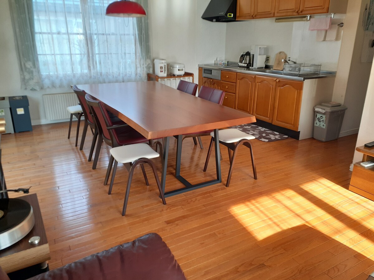 Janeiro de 2025 aberto! Temos um total de 3 hotéis para alugar um prédio inteiro.O nome deste quarto é "KITAKITSUNE-". Todo o edifício é um tipo de casa de 2 andares com um tamanho de cerca de 130 ㎡. Há três quartos.Há 2 quartos de estilo ocidental e 1 quarto de estilo japonês.Existem 4 camas semi-duplas e 2 colchões semi-duplos. Se o número de hóspedes exceder 6, forneceremos até dois colchões de solteiro na sala de estar.Uma vaga de estacionamento gratuita com garagem em frente ao quarto.O estacionamento também tem uma tomada de veículos elétricos.Cada quarto está equipado com ar condicionado, o que o mantém fresco no verão, e o aquecimento de piso o mantém quente no inverno. [A estação mais próxima] Metrô Tozai Line "Higashi Sapporo Station" 15 minutos a pé (1,1 km) Metrô Tozai Line "Shiroishi Station" a 17 minutos a pé (1,2 km) [Como se locomover do Novo Aeroporto de Chitose] Pegue a JR "Shin Chitose Airport Station" e desça na "Estação Shin-Sapporo".Transfer para o metrô e desça na "Estação Higashi Sapporo".(Duração estimada: 1:00 h 15 min) Se você usar o ônibus do aeroporto, desça na "Estação Otaniji", faça o traslado para o metrô e desça na "Estação Higashi Sapporo".(Horário: aprox. 1h 10min) Cerca de 1 hora e 5 minutos de carro (se estiver usando a rodovia)