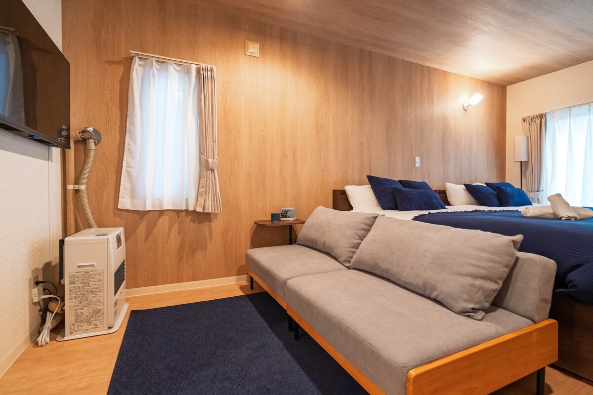 Um belo quarto recém-construído foi aberto na popular área de Kotoni, uma base para passeios turísticos em Sapporo e Otaru!Fica a 3 minutos a pé da Estação JR Kotoni, e a estação de metrô fica a uma curta distância a pé, e o acesso ao Novo Aeroporto de Chitose e à Estação Sapporo é excelente. ■ Sobre o quarto e as instalações: este é um espaço privado moderno que pode acomodar confortavelmente até 6 hóspedes. Roupa de cama: 2 camas semi-duplas e um espaçoso sofá-cama duplo para acalmar sua fadiga de viagem. Instalações confortáveis: Wi-Fi de alta velocidade e smart TV.É confortável durante todo o ano com ar condicionado no verão e aquecimento poderoso no inverno. Adequado para estadias de longa duração: cozinha completa com utensílios de cozinha e louças, geladeira, máquina de lavar roupa (com detergente).Se você está em uma estadia de trabalho ou consecutiva, você pode relaxar e se sentir em casa. É muito conveniente como um centro para passeios turísticos em Hokkaido, não só em Sapporo, mas também para passeios turísticos em Otaru. Descontos estão disponíveis para uma semana ou mais de estadia de 30 dias ou mais.Fique à vontade para perguntar qualquer um para mim!