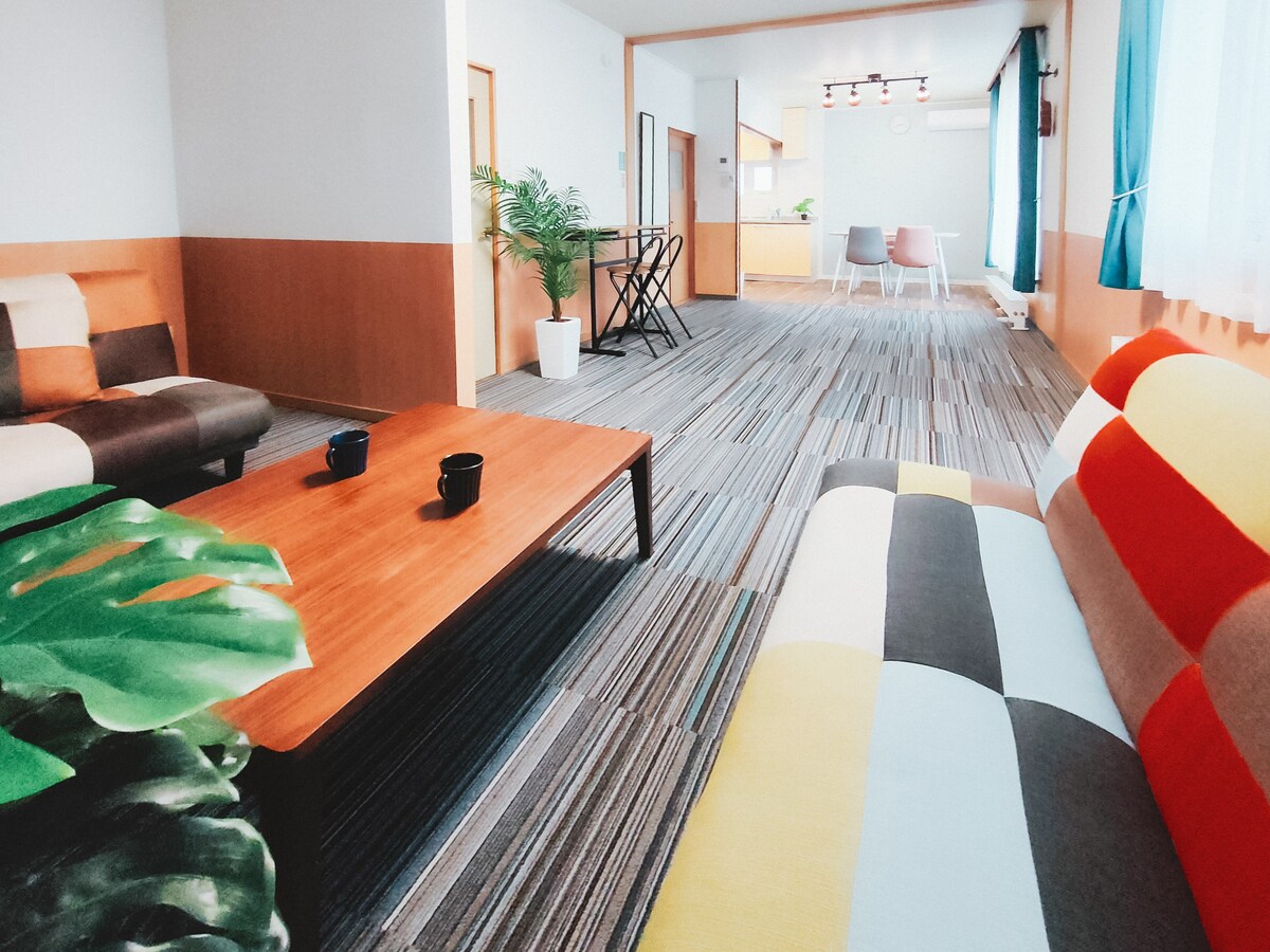 Spacious Family Retreat with Free Parking Stay in this renovated single-story house (3LDK) where all 3 bedrooms connect directly to the spacious living room. Parking is next to the entrance. We provide toys & games for kids and a massage chair for adults! After sightseeing, relax in the large living area, sleep on Futon beds, and make lasting memories. Mt. Hakodate Ropeway and the main sightseeing area are just a 5-min drive. Note: Located in a quiet residential area near the tram terminus.