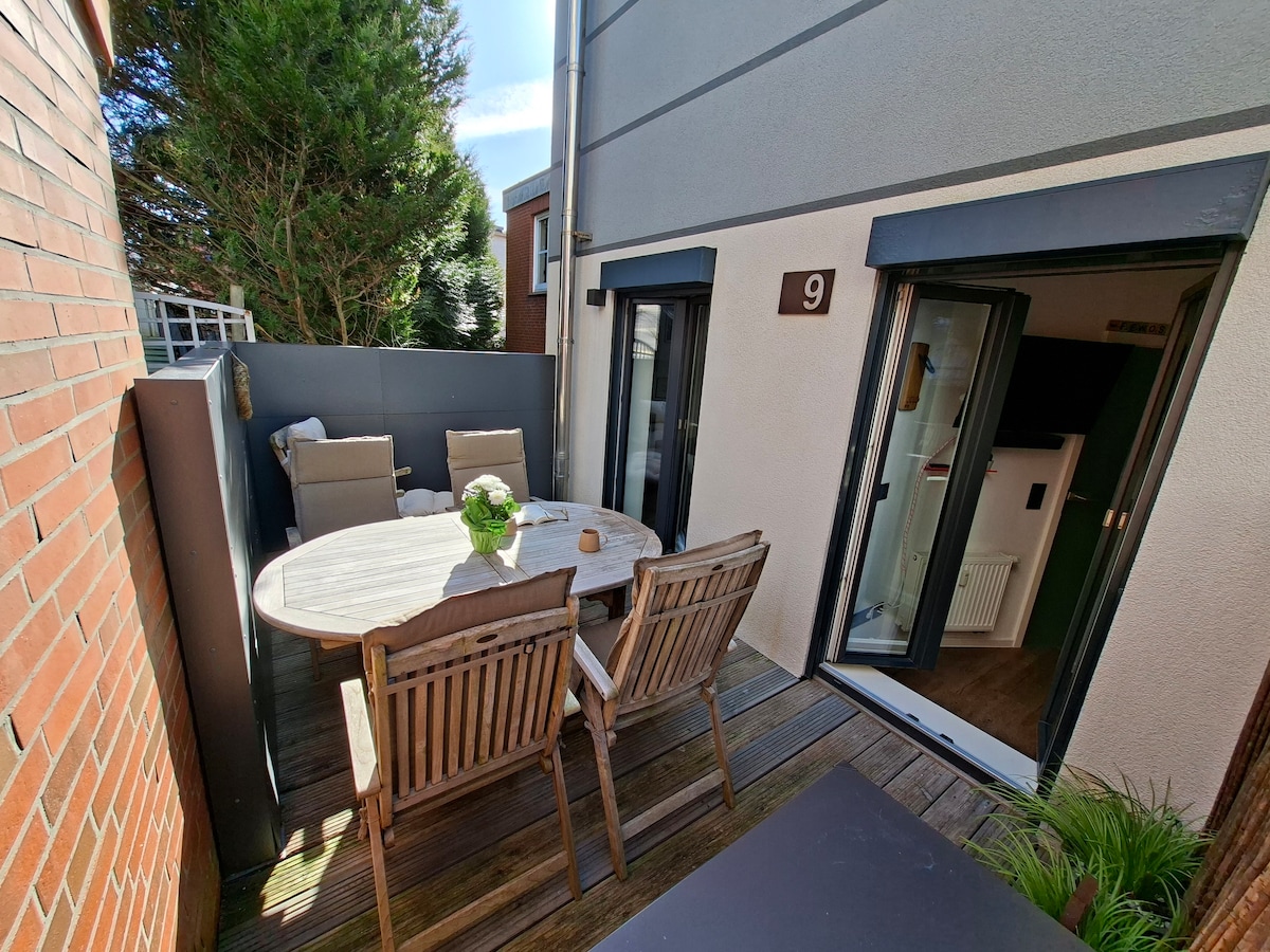 GlückAhoi Borkum: varanda sul e cadeira de praia