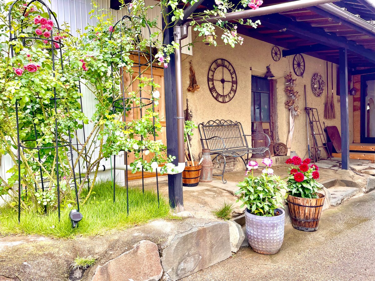 A casa de 130 anos foi cuidadosamente renovada pelo próprio anfitrião e revivida como uma casa inteira para alugar.Ao longo dos anos, vigas, colunas, quartos de tatame e lareiras e fogões a lenha dão à pousada um calor tranquilo e calmo.As janelas oferecem vistas dos Alpes Centrais e todas as estações das montanhas, e à noite, cheias de estrelas.Há um banho Goemon ao ar livre onde você pode ferver água com lenha, e você também pode experimentá-lo se quiser.A cozinha está equipada com utensílios de cozinha e condimentos, e você pode desfrutar de refeições na lareira.O campo cultiva vegetais sazonais e arroz, e você também pode tocar ingredientes frescos durante a época de colheita.É um lugar para adultos ficarem onde você pode deixar sua vida diária e se sentir confortável, mesmo quando você não faz nada.