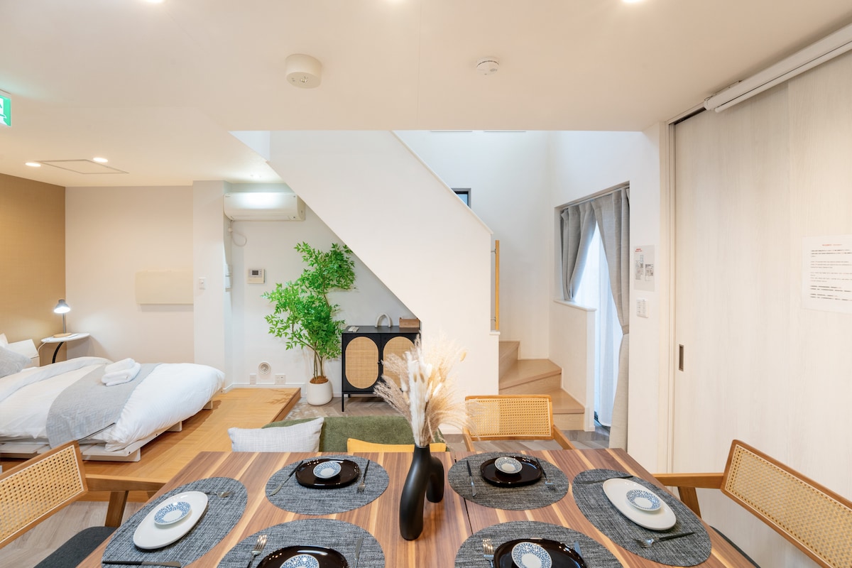 HIBI タウンハウス現代設備京町家貸切、嵐山金閣寺バス停2分 JR円町駅歩 11分近銭湯 Netflix