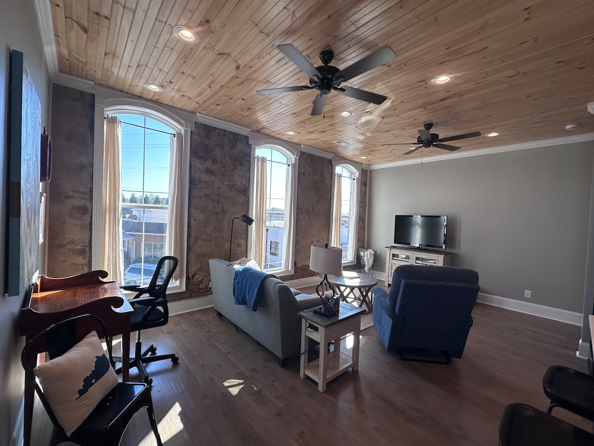 Desfrute de uma estadia neste estúdio localizado no centro da cidade, bem no coração do histórico Hopkinsville. O apartamento está totalmente mobiliado com uma cama queen size, um sofá-cama, mesa de jantar para duas pessoas e lavadora e secadora. A uma curta distância a pé das lojas e restaurantes do centro da cidade. Entrada privativa para o apartamento do segundo andar (sem elevador). *Observação: este estúdio não tem janelas - perfeito para pessoas que mudam de vida, notívagos, gamers ou vampiros!