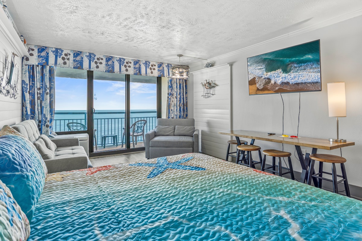 1BR Myrtle Beach Ocean Front com lareira e arcadas