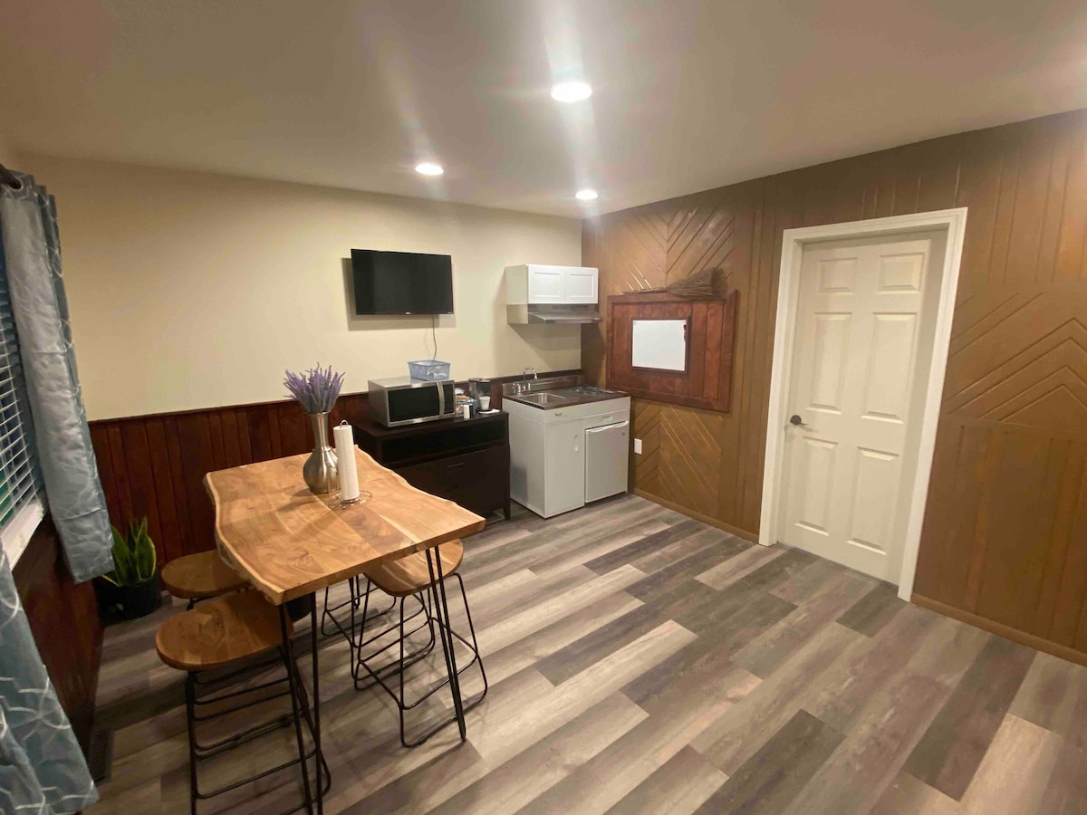 Um lugar elegante para ficar perfeito para quem procura um lugar tranquilo e relaxante para ficar. Se você planeja ficar por uma noite ou por um mês, eu tenho sua casa longe de casa pronta para você - confortável, aconchegante e limpa com guloseimas especiais para todos os hóspedes. O espaço está no porão da minha casa. Tem tetos altos, uma entrada privativa e sem espaços compartilhados. Linda propriedade rural com muito espaço para passear, perfeita para animais de estimação esticarem as pernas depois de um longo passeio de carro.
