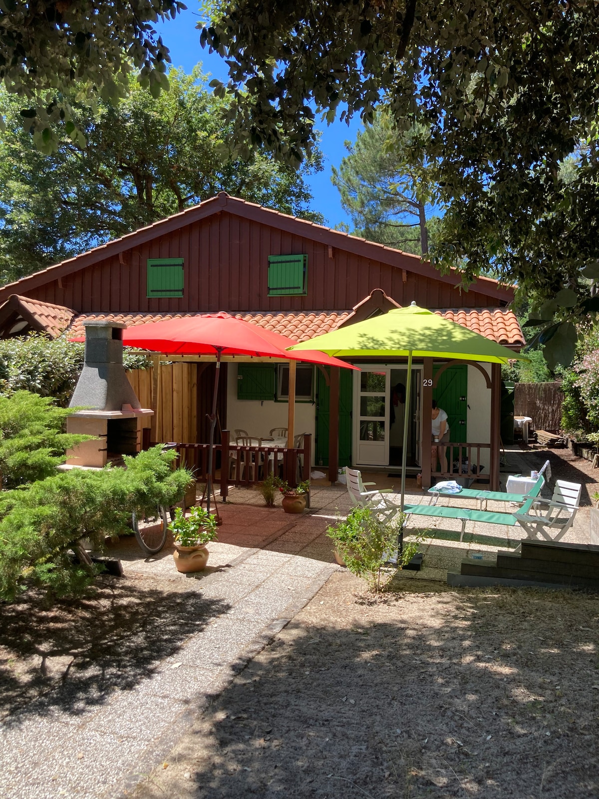 Acomodação independente localizada no terreno da casa (separando a sebe) onde vivemos em família com 2 gatos (trabalhamos). A 1 km do oceano, chalé de 20 m2 equipado com área de cozinha, quarto e banheiro com vaso sanitário. Bela extensão do terraço ao ar livre. Galpão para acomodar suas bicicletas (não é adequado para motocicletas). Ar-condicionado, aquecimento e Wi-Fi. Possibilidade de bicicletas e pranchas de surfe por uma taxa extra no local. Roupa de cama e toalhas fornecidas.