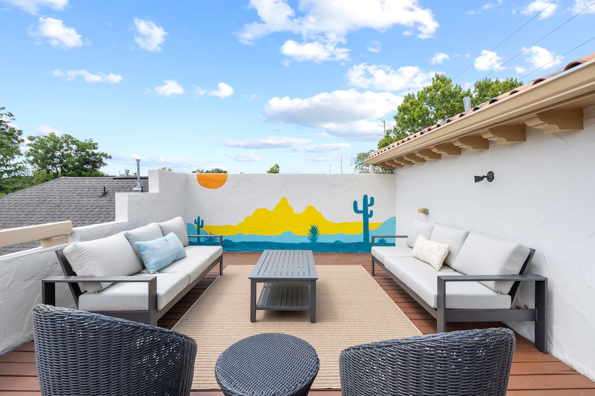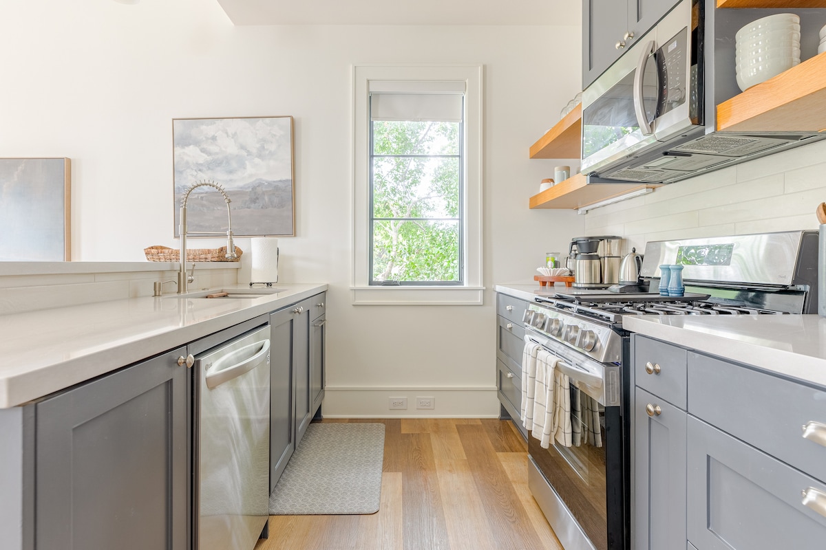 Localização, localização, localização - nossa moderna pousada fica bem no meio do histórico Heights, a apenas uma curta distância da 19th St. e da trilha Heights Hike & Bike Trail. Seja hospedando-se por uma noite ou viagem prolongada, você vai se sentir em casa com uma cozinha totalmente equipada, cama king size, TV inteligente de 65 polegadas + cabo de streaming, Wi-Fi de alta velocidade, lavadora/secadora, estacionamento fora da rua e entrada privativa.