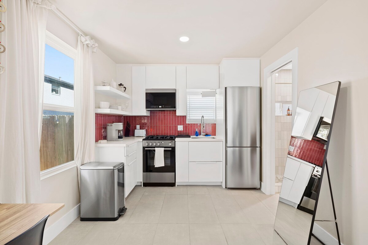 La Casita on Robbie está localizada em um dos bairros mais badalados de Houston, Houston Heights, que possui uma grande variedade de cafés exclusivos, boutiques e restaurantes locais. Deixe seu corpo e mente desfrutarem de uma escapada relaxante nesta casa de hóspedes recém-construída com vários espaços ao ar livre e vegetação exuberante. Quer explorar tudo o que Houston tem a oferecer? Não se preocupe — o centro de Houston fica a apenas cinco minutos de carro, e tanto a Galleria quanto Montrose ficam a 15 minutos.