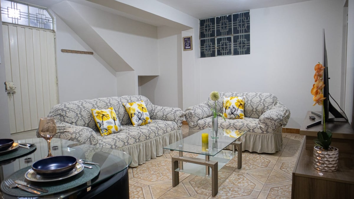 Desfrute de uma acomodação tranquila e central a um quarteirão e meio da Plaza de Armas de Huánuco, a 5 quarteirões do mercado de Huánuco, a 2 quarteirões dos principais bancos da cidade, a um quarteirão do Parque Amarilis, implementado para esportes, no quarteirão há lojas e restaurantes de comida crioula e cevicheria, a 15 minutos do Sítio Arqueológico de Kotosh, a 20 minutos da Casa de la Perricholi.