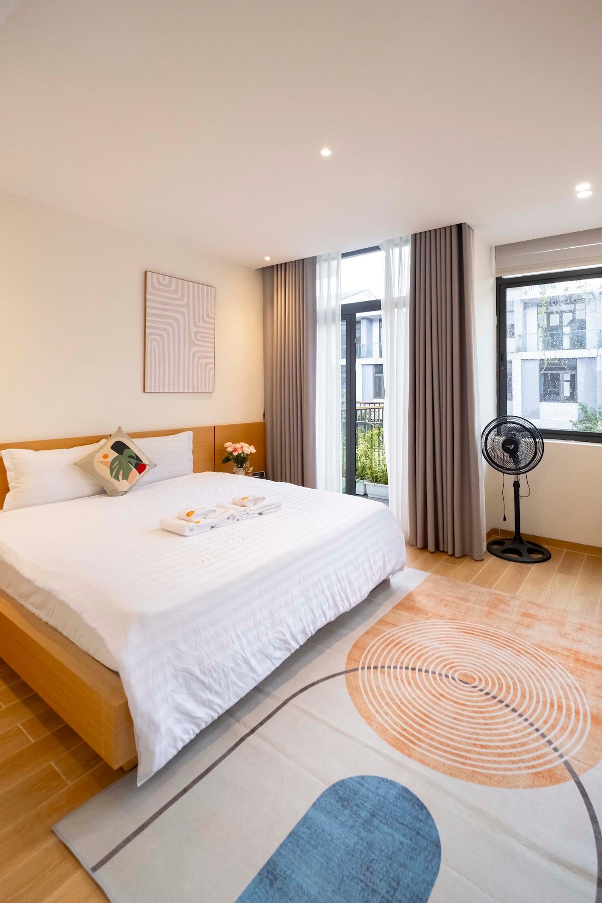 Hue Crown Boutique 301_Estúdio com duas camas de solteiro com varanda