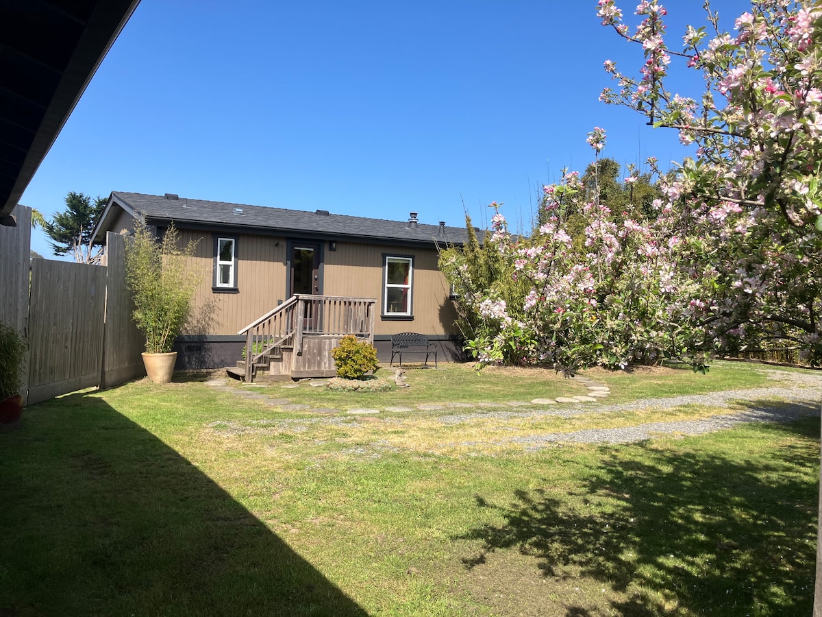 Acorde com o nascer do sol e vista para a bela Baía de Arcata a partir desta casa de campo de 1 cama e 1 banheiro! Adjacente ao Parque de Manila com golfe de disco, tênis, área de piquenique, playground infantil, mini-golfe e a uma curta distância a pé da praia! Acomoda até quatro adultos ou uma família pequena. Quintal aberto com vista, churrasqueira e lareira. Todas as comodidades de que você precisa para uma viagem ou férias.