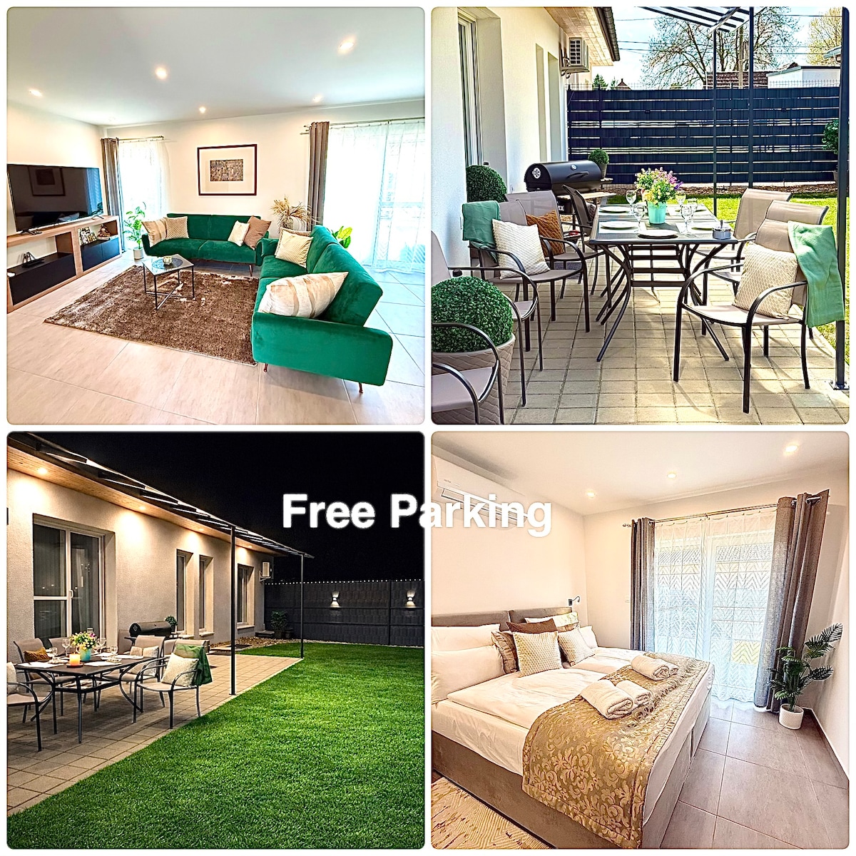 Ez a 2026-ban épült, vadonatúj, modern apartman ideális választás családoknak és baráti társaságoknak, akár 6 fő részére. A lakás nappalival és 2 külön hálószobával rendelkezik, így kényelmes és jól elkülönített pihenést biztosít. A 17 m²-es fedett terasz egy csendes, privát kerttel, grillezési lehetőséggel. A környék ideális azoknak a vendégeknek, akik a belvárosi nyüzsgés helyett kényelmes elhelyezkedést, bevásárlási lehetőségeket, sportolási opciókat és pihentető wellnessprogramot keresnek.