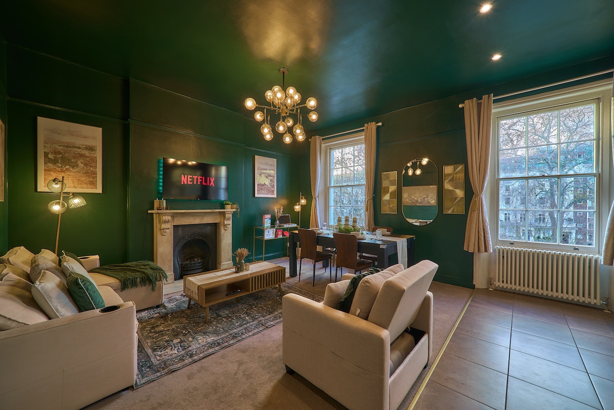 Apartamento de luxo com jardim + cabine • Zona 2 • Perto do centro -Favorito dos hóspedes- Hospedado desde 2010 Acorde com o canto dos pássaros e vistas para o parque frondoso neste elegante e espaçoso apartamento de jardim em frente a um dos maiores parques de Londres. Situado na Zona 2, a poucos minutos da Northern Line e do centro de Londres, é uma combinação rara de espaço, estilo e calma. A propriedade inclui uma suíte privativa de cabana de madeira no jardim — perfeita para famílias, amigos ou qualquer pessoa que valorize a privacidade e um toque de luxo.