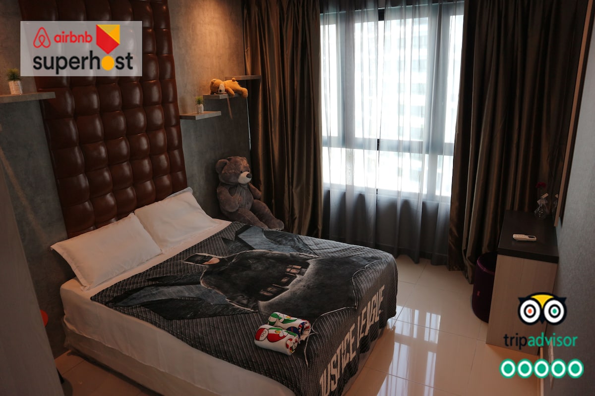 Relaxe e descontraia em um aconchegante quarto com cama queen size com área espaçosa, espelho de maquiagem e colchões de linho de qualidade de hotel, travesseiros e toalhas. Vem com Netflix HD Family e conta de convidado do Youtube e Wi-Fi de fibra estável de 500 Mbps. Adequado para férias em casa, formatura, tempo em família e viagens de trabalho. Os hóspedes também têm acesso à piscina, playground, academia, lojas de conveniência e ponte de ligação ao i-City Mall. Perto da rodovia, Seksyen 14, Klang, UiTM e Estádio Shah Alam. Ficamos felizes em ajudar a sua estadia a ser tão suave quanto manteiga~