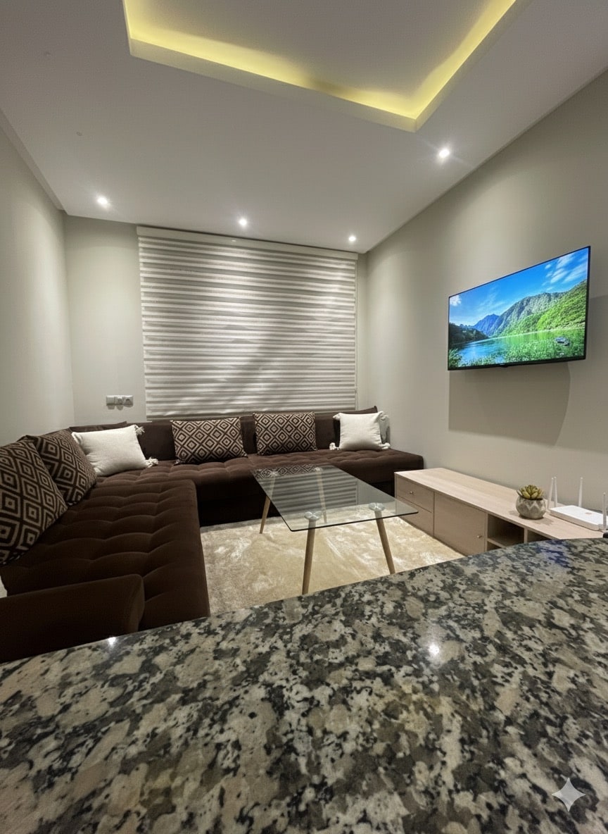 Welcome to your perfect stay in Agadir! This modern apartment on the 3rd floor in a quiet, well-connected area features: 🛏️ 1 comfortable bedroom + bright living room 🍽️ Fully equipped kitchen 🛁 Clean bathroom with fresh towels 💼 Workspace for remote work or study 📶 Fast Wi-Fi & TV 🅿️ Free parking outside and in basement 🏊 Access to a clean, shared swimming pool Close to supermarkets, restaurants, cafés, and attractions.