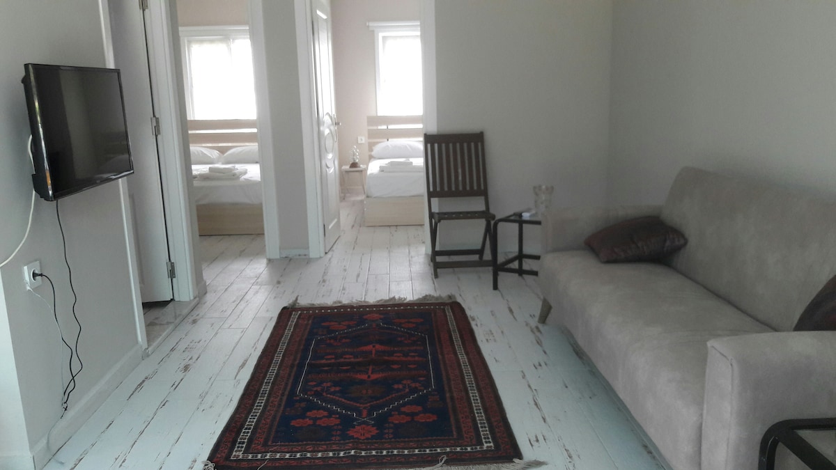 Você pode relaxar em família nesta acomodação tranquila. Nossos apartamentos 1+1 são novos e espaçosos. Dentro dos apartamentos, há uma TV, máquina de lavar roupa, ar condicionado,geladeira, cafeteira e todos os utensílios de cozinha. Em termos de localização, fica a 5_10 minutos de carro de muitas baías e tem uma varanda e jardim muito grandes. Pode haver um churrasco e um samovar em nosso jardim. Oferece uma estadia muito confortável para famílias com crianças. Proporciona uma ótima paz com vista para a montanha. Aguardamos ansiosamente por um feriado cercado pela natureza intocada
