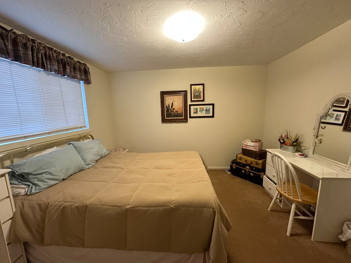 Lindo e totalmente mobiliado Large en Suite Apartment. 1 quarto, 1 banheiro. 1/2 um bloco para o campus BYUI e 2 blocos para o Templo Rexburg. Netflix & Dishnetwork TV. Cozinha aberta totalmente equipada. Sala de estar e jantar com mesa de jantar e cadeiras. Sofás para o seu conforto e relaxamento. Além disso, a caminho de Yellowstone, Island Park, Jackson Hole, os Tetons, Bear World e muitas aventuras ao ar livre. Tem uma Cama King Size Sofá-cama 2 Colchões de Ar Queen Size. Ventilador de ar condicionado e teto no quarto e na sala de estar