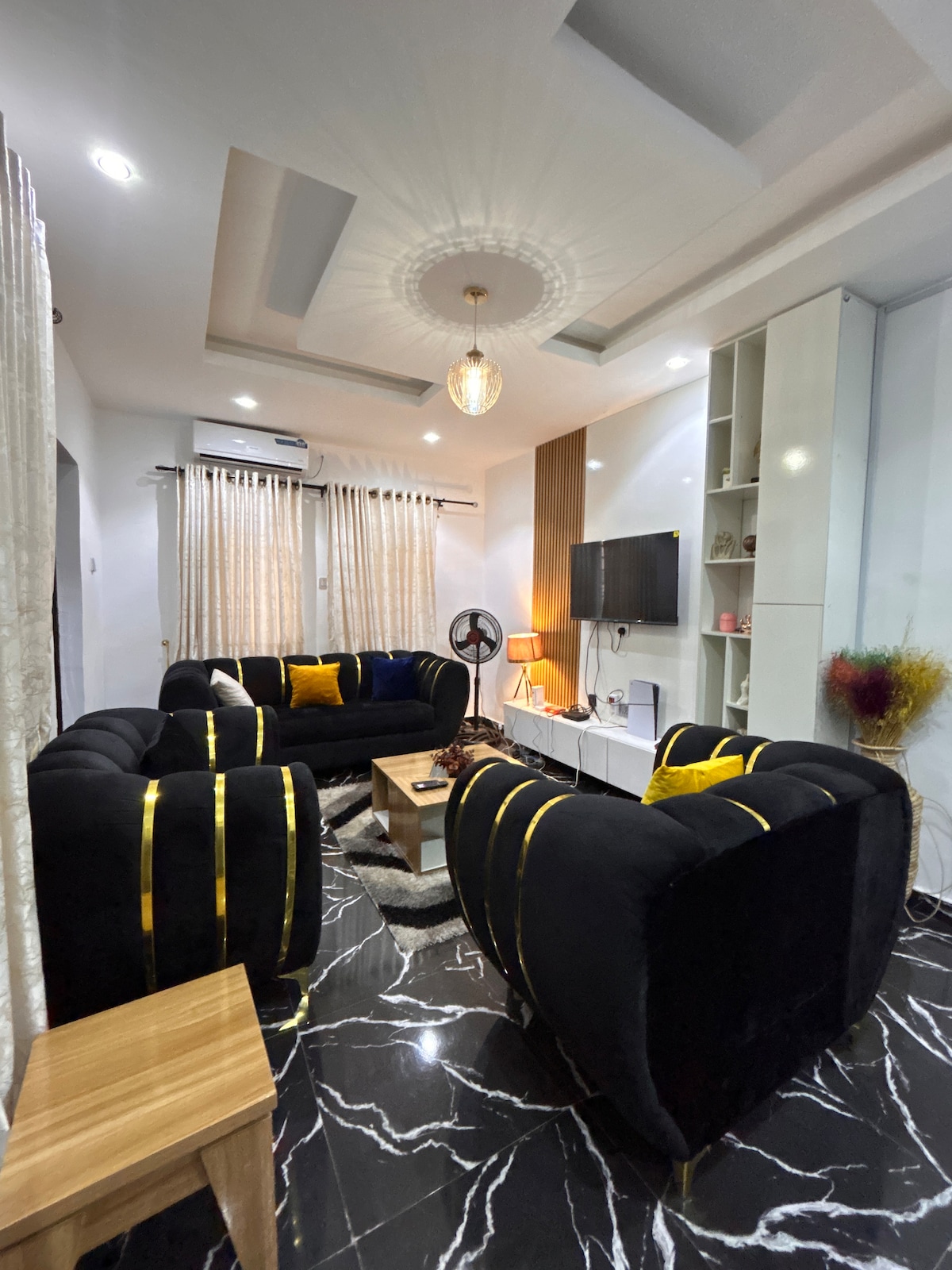 Stylish 3-bedroom apartment on Emina Crescent, Ikeja just 10 mins from Murtala Muhammed Airport. Enjoy a modern living space with elegant décor, comfy sofas, smart TV, fully equipped kitchen, and cozy bedrooms. Perfect for business or leisure stays with 24/7 power, fast Wi-Fi, and secure parking. Close to Ikeja City Mall, top restaurants, and major business hubs your serene retreat in the heart of Lagos.