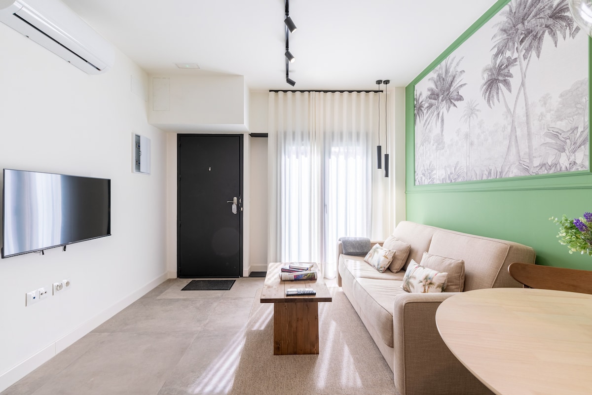 Um lugar único, especialmente projetado para atender a todas as suas necessidades. Apartamento moderno, novo e muito luminoso de dois quartos com charme andaluz, localizado no centro histórico de Sevilha, a apenas 8 minutos a pé da Giralda, Catedral, Alcázar Real e Plaza España. Apartamento nuevo, moderno y muy luminoso de dos dormitorios, con balcones en un edificio con encanto andaluz, situado en el centro histórico artístico de Sevilla, a tan sólo 8' a pies de la Giralda, Catedral, Reales Alcázares y Plaza España