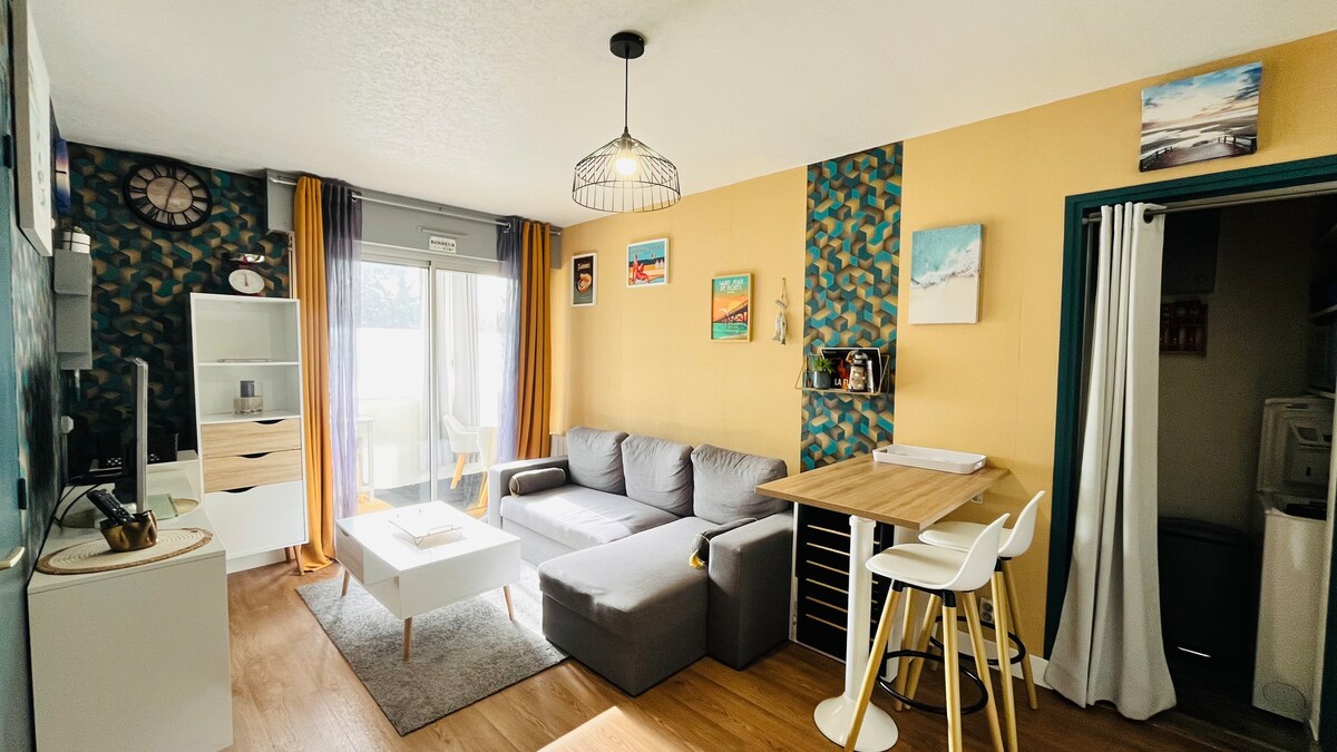 Esta acomodação é cuidadosamente selecionada e preparada pela My Cocoony Conciergerie, especialista em estadias à beira-mar. 🌊 Que bom ter você no La Dune! Este casulo boêmio chique de 30 m² espera por você a 50 m da praia 🏖️ e ao pé da animada rua de pedestres: restaurantes🍽️, bares🍹, sorveterias🍦, passeios🎠... Localizado em uma residência tranquila, tudo está a uma curta distância a pé: talassoterapia, floresta🌲, golfe⛳, supermercado🛒, farmácia💊... A localização perfeita para umas férias sem carro!