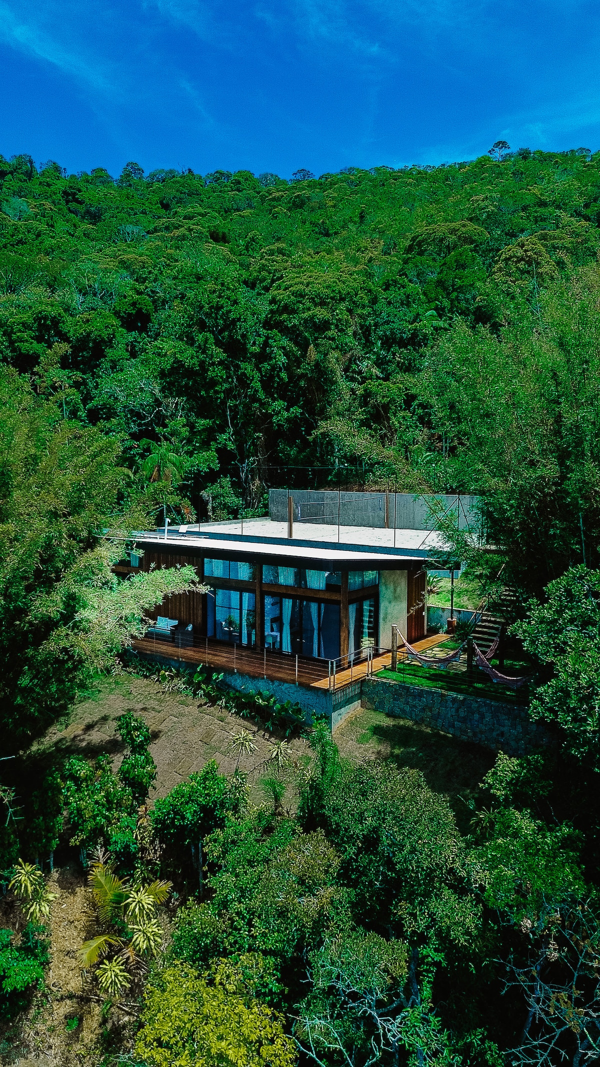 A Casa Macaco está gentilmente integrada entre as árvores, a apenas alguns minutos de piscinas naturais e cachoeiras. Oferece espaços internos seguros, confortáveis e totalmente equipados, com internet de alta velocidade, além de um terraço aberto na cobertura, concebido como um lounge-mirante. A casa faz parte do centro de retiro Aldeia Rizoma, com acesso a sauna, área de massagens, academia ao ar livre, trilhas naturais, áreas de agrofloresta, gastronomia e água natural de nascente.