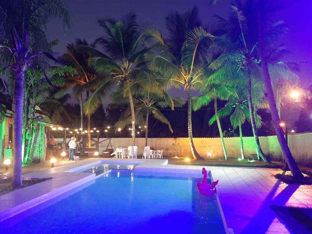 CASA NACRI Maravilhosa estrutura na praia localizada a 17 km de Ilhéus indo para Itacaré. Acomoda até 10/14 pessoas em suítes com vista para uma fantástica piscina com iluminação noturna A casa está totalmente equipada, o serviço do caseiro e o café de manhã estão incluídos. Há a possibilidade de acrescentar um pacote extra com cozinheira especializada em gastronomia brasileira e italiana. Água de cocô gratuita na chegada (nos limites de produçao dos coqueiros) Jogo de matraquilhos disponivel