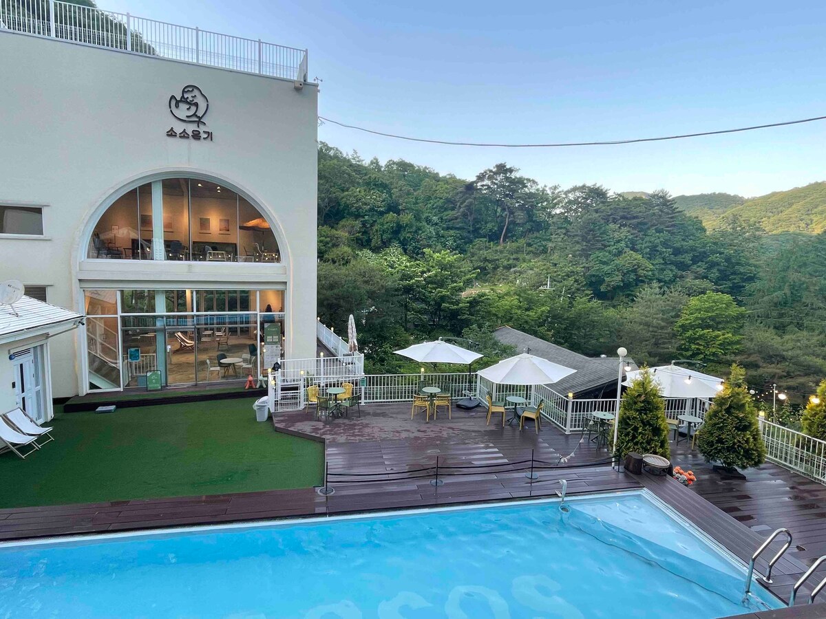 Essa é uma acomodação privada localizada em um local adequado para explorar as atrações turísticas de Pocheon. (Art Valley, Herb Island, Sanjeong Lake, Pyunggang Land, Hantang River, Goseokjeong, etc.) Faça uma pausa com seus entes queridos em uma acomodação tranquila. A área de churrasco em frente ao alojamento pode ser usada sozinha:) ============================== Taxa 💡de churrasco 25.000 KRW para 2 pessoas 3 a 4 pessoas 30000 won 5-6 pessoas 40.000 won 45.000 KRW para 7 pessoas 50.000 KRW para grupos de 8 pessoas ou mais (forno, carvão, carvão, tocha, luva, grelha fornecida) 💡Lenha - 15.000 won ============================== Dica de desconto na área de🔻 churrasco🔻 168, Jungang-ro, Pocheon-si, Gyeong Se você trouxer um recibo depois de entrar na Woori Meat Department Store Desconto DE💎 10.000 won💎 É um restaurante que há rumores de ser um açougue que vende carne de qualidade em Pocheon. Há também um mercado grande GS bem na sua frente, e é adequado para compras (localizado no caminho para a pensão).