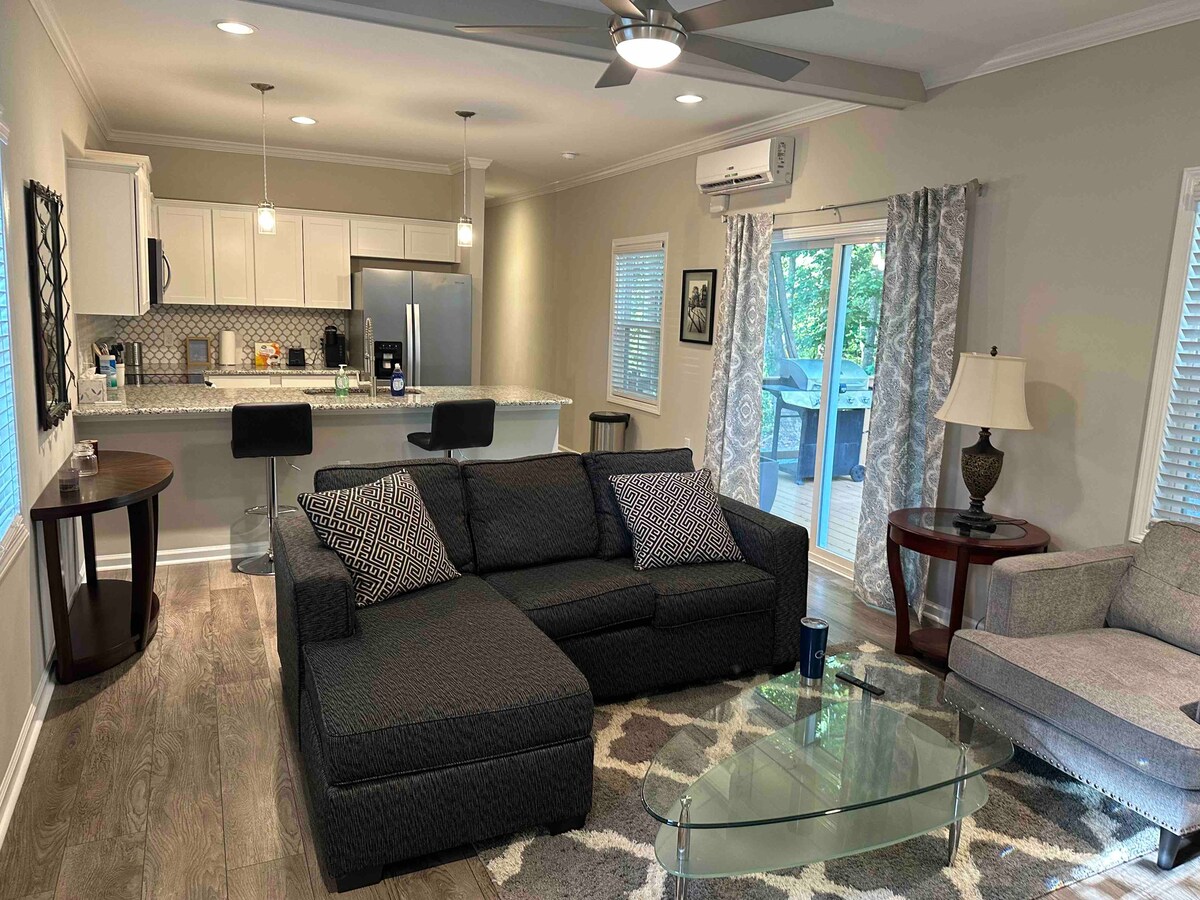 Novo apartamento moderno na encantadora Fort Mill. Com espaço para até 4 hóspedes, o apartamento privativo tem tudo o que você pode precisar - cozinha de chefs totalmente abastecida, um bar de café Keurig, cama super confortável, uma máquina de lavar e secar roupa e acesso à Netflix e Hulu. A apenas 5 minutos do centro de Fort Mill, a menos de 15 minutos de Ballantyne e a 30 minutos do coração de Charlotte, você está longe o suficiente da agitação, enquanto ainda é central para todas as melhores atrações, lojas e restaurantes.