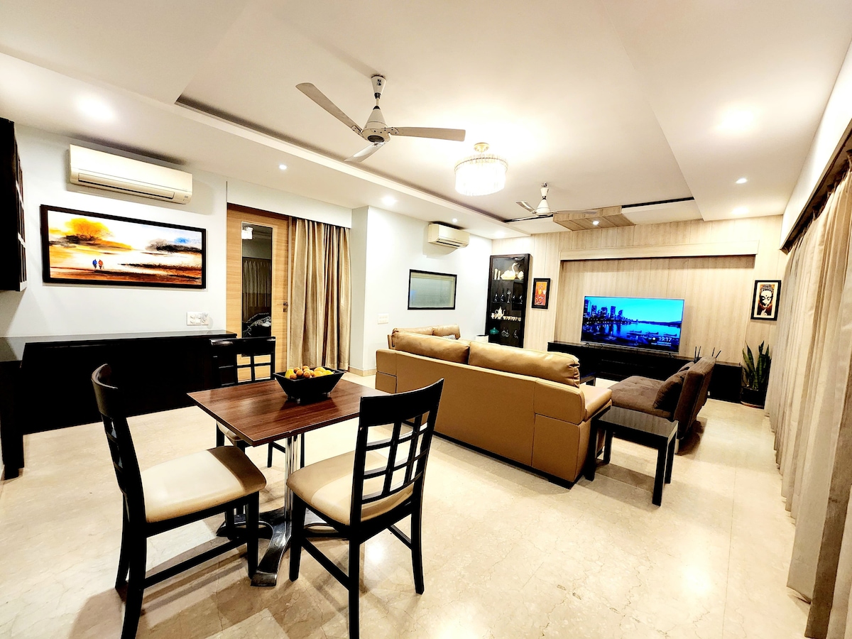 Independente 1 BHK Luxurious apartamento com DOIS Split AC, Smart TV com quase todos OTT, incluindo Netflix, Amazon Prime, ZEE5, Hotstar, Voot, Sony Live. Roupeiros Sofás, Sala de jantar, Cozinha, Frigorífico, Microondas a Gás Chimney e.t.c Um lugar muito seguro e protegido para mulheres. Sociedade fechada e vigiada. Divirta-se com toda a família ou sozinho neste lugar elegante. Água potável de Bisleri inclusa no preço Wi-Fi DE 100 MBPS instalado Todos os produtos de higiene pessoal estão incluídos Colcha de alta qualidade usada