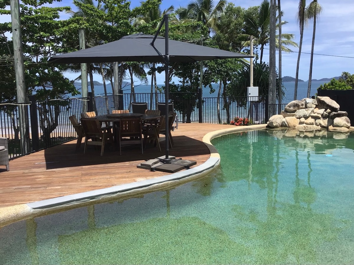 Casa espaçosa à beira-mar com vista deslumbrante para a Ilha Dunk e as Ilhas do Grupo Familiar. Praia para caminhada espetacular a poucos metros da frente da casa e a uma curta caminhada da trilha de caminhada Kennedy até Tam O'Shanter Point e Kennedy Bay.