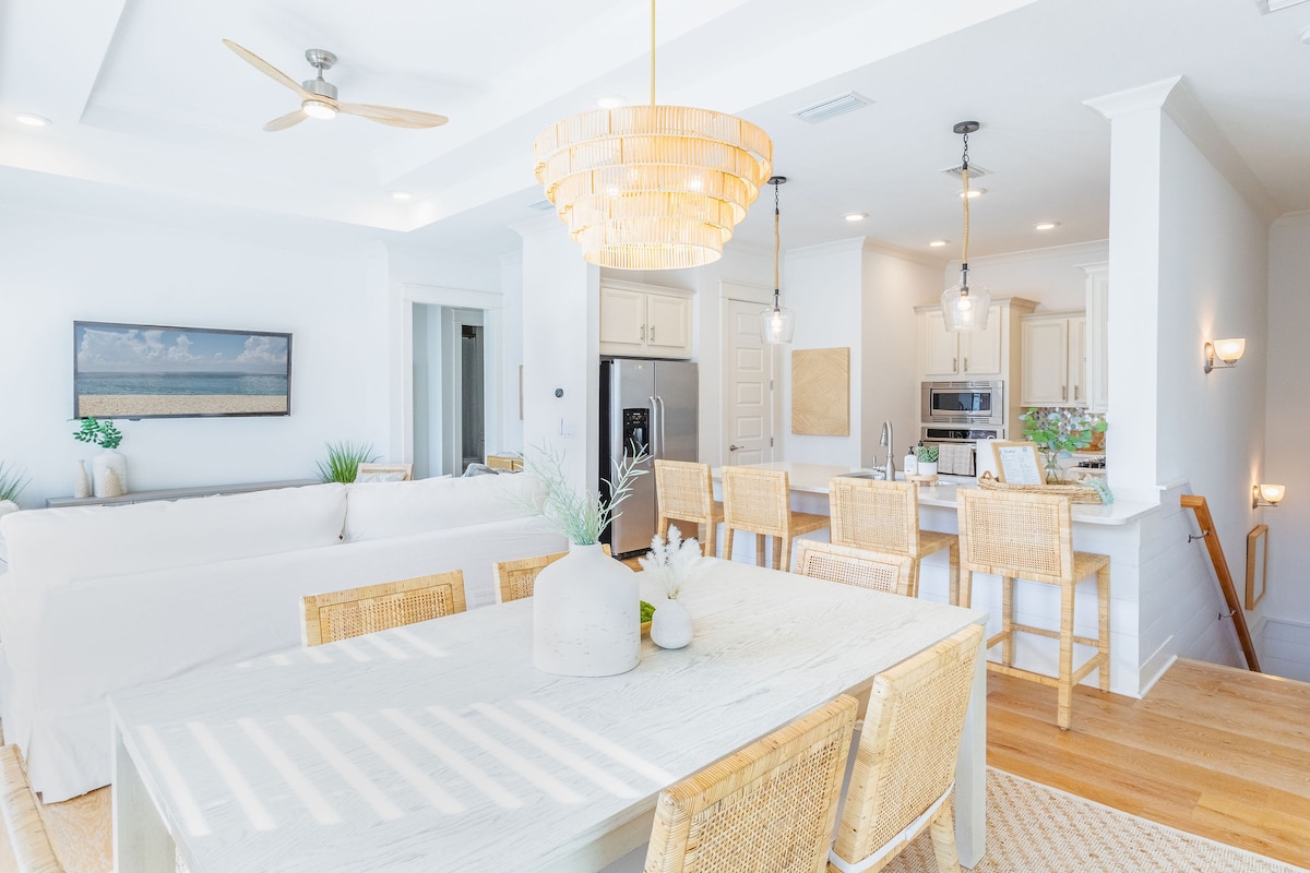 Você vai adorar este luxuoso refúgio de praia por sua piscina aquecida privativa, lounging ao ar livre, internet rápida, cozinha do chef e compromissos de luxo. Estamos a cinco minutos a pé da praia, a cinco minutos de carro do Parque Estadual Camp Helen, a 8 minutos da Praia de Rosemary e 30A e a 10 minutos do Pier Park! O aquecimento da piscina está disponível por $ 40/dia. Detalhes abaixo. Pergunte sobre o nosso carrinho de golfe de 6 lugares disponível para aluguel por US$ 125/dia Aceitamos cães com pagamento de uma taxa de US$ 170 para animais de estimação. Três cães no máximo.