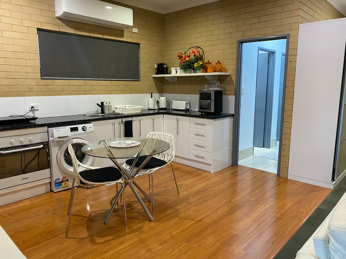 Se você está procurando um estúdio que pareça um lar longe de casa, então este é o ideal para você. Localizado na parte de trás de uma casa de família, separado da casa. Localizado em Innaloo, você tem tudo o que precisa à sua porta. - Centro comercial Innaloo a 900 metros de distância - Estação de trem Stirling a 700 metros de distância (pode levá-lo diretamente para a cidade) - Praia de Scarborough 4,1 km - IKEA a 600 metros Com 2 cães amigáveis para recebê-lo, você se sentirá em casa.