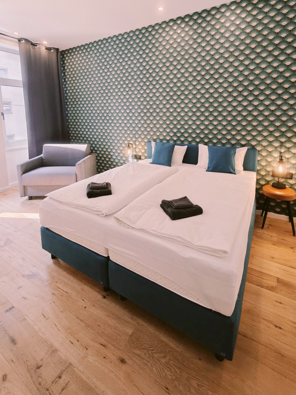 Erlebe Luxus mit grandiosem Ausblick! Dieses stilvolle Luxus-Apartment bietet alles: eine voll ausgestattete Küche mit Nespresso-Maschine, gemütlichen Essbereich, großen Smart-TV und schnelles WLAN. Von Mai bis September lockt der beheizte Rooftop-Pool – ideal zum Sonnen und Abkühlen. Dank Top-Lage (U-Bahn ums Eck) bist du in wenigen Minuten in der Wiener Innenstadt. Kurzzeitaufenthalte (unter 31 Nächten) sind bis max. 90 Tage pro Jahr möglich. Für längere Zeiträume bieten wir Monatsmieten an.