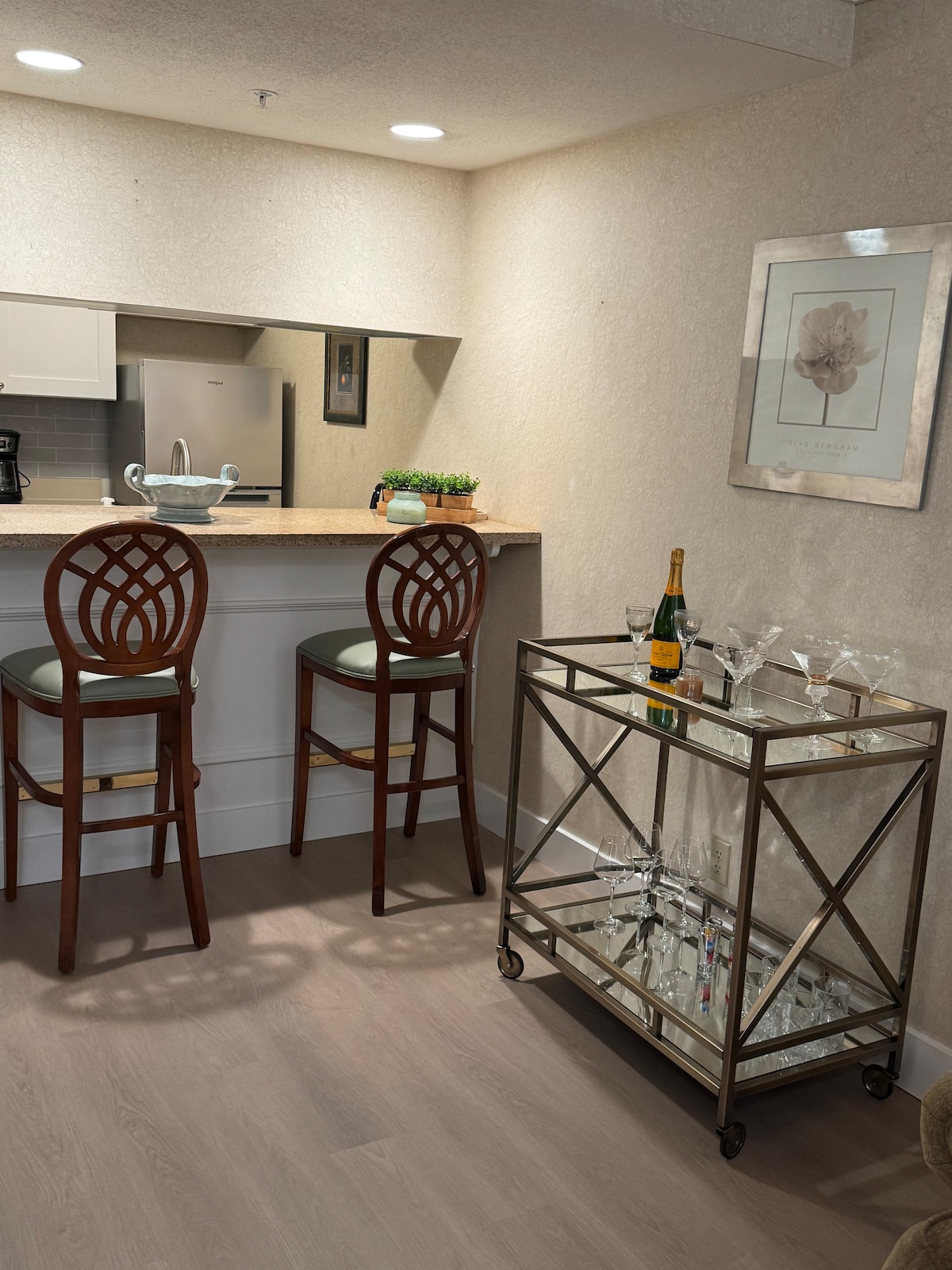 A unidade privada tem estacionamento designado, acesso à piscina, seu próprio aquecedor de água, amaciante de água, sistema de filtragem, 2 ventiladores de teto, aquecedor, purificador de ar e ar condicionado. Com uma cama queen size, cômoda, TV de 42" e Fire Stick com contas de streaming, Wi-Fi, espelho de corpo inteiro, poltrona reclinável, mesa de jantar e cadeiras. O banheiro tem um chuveiro walk-in, espelho de vaidade grande e todos os acessórios de banheiro necessários. Kitchenette completa com micro-ondas, bico duplo, fritadeira, chaleira, cafeteira e muito mais. O dono mora na propriedade.