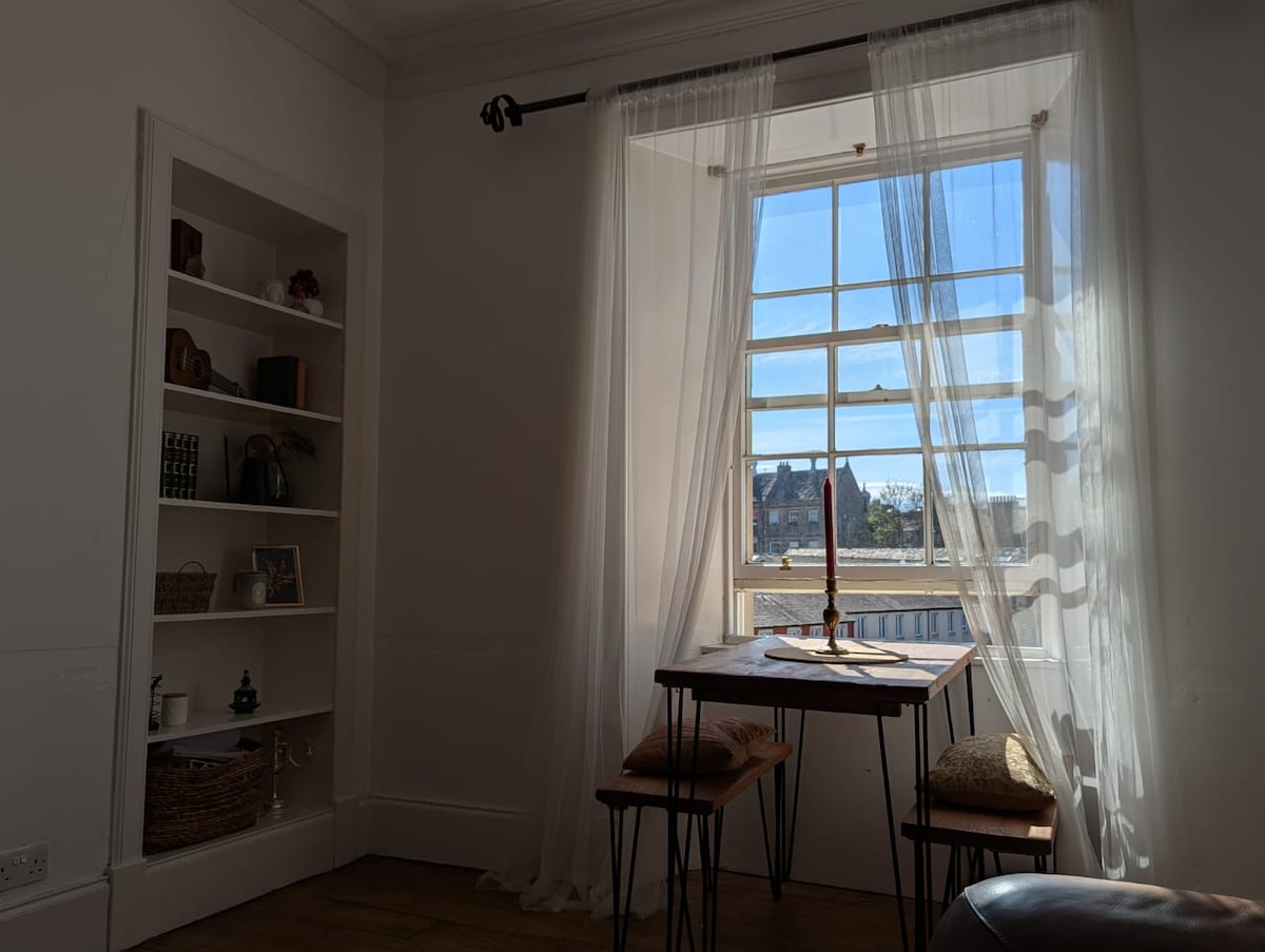 Meu encantador apartamento georgiano de dois quartos é o lugar perfeito para ficar no centro de Edimburgo. Baseado bem no meio de Stockbridge, fora da Main Street, descendo um terraço tranquilo do século XVIII. É ideal para explorar a cidade e depois voltar para casa para relaxar e ter um bom sono tranquilo. Todos os quartos têm persianas de madeira originais que podem bloquear qualquer luz. O apartamento é muito calmo e sereno... mesmo com a abundância de cafés, restaurantes e bares a uma curta distância a pé.