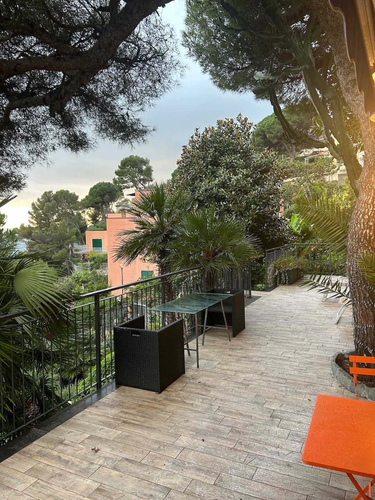 Estúdio com acesso independente cercado por vegetação, em um jardim típico da Ligúria com terraço com matagal mediterrâneo. Muito panorâmico, atenção aos detalhes, com acesso direto ao calçadão Europa e ao mar. Ideal para casais. Chuveiro com cromoterapia e hidromassagem, ar condicionado, máquina de café nespresso, kitchenette, forno micro-ondas, frigobar. Terraço adjacente de 70 m ², com espreguiçadeiras e uma pequena mesa para jantares românticos e solário. Vencedor do prêmio de jardim botânico 2017.