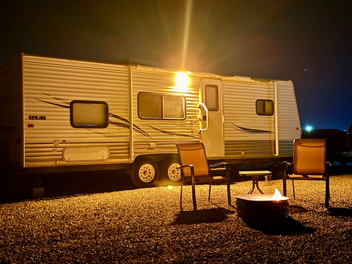 Por dentro do trailer • Cama confortável para noites tranquilas • Cozinha americana funcional para refeições simples • Banheiro espaçoso com chuveiro completo • TV de tela plana para noites aconchegantes • Claraboia que preenche o espaço com luz natural Exterior • Fogueira para observar as estrelas e s'mores • Vistas deslumbrantes da paisagem do deserto • Céu noturno incomparável com estrelas incríveis Informações importantes sobre a estadia • Projetado apenas para estadias de médio prazo • Estadia mínima: 30 dias • Estadia máxima: 90 dias