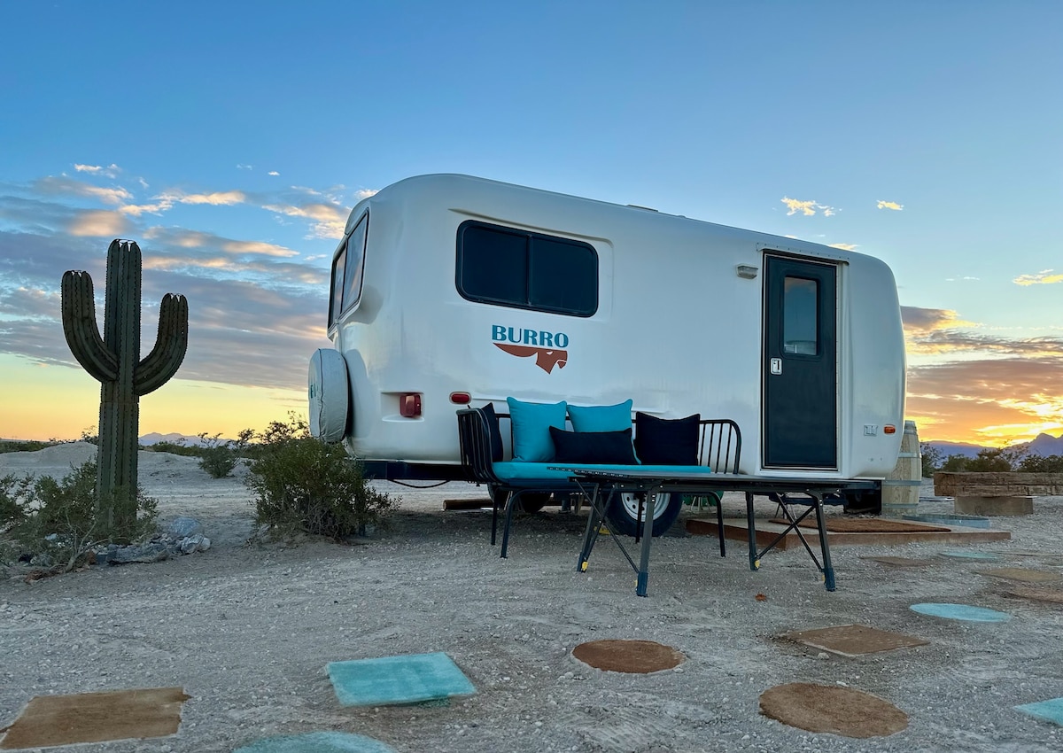 Hospede-se em nosso Burro Camper vintage no Rancho Tarantula, a poucos minutos do Parque Nacional do Vale da Morte. Este espaçoso trailer apresenta uma cama queen size, banheiro privativo, copa, eletricidade, ar condicionado/aquecimento, Wi-Fi e assentos ao ar livre com vista para o deserto. As comodidades compartilhadas incluem uma casa de banho, cozinha ao ar livre, lareiras e um prédio comunitário com jogos. Perfeito para um retiro tranquilo no deserto, com pôr do sol deslumbrante, céus estrelados e fácil acesso às maravilhas naturais do Vale da Morte!