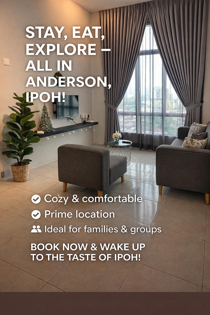 Um confortável apartamento de três quartos e dois banheiros, a sala de estar e todos os quartos são climatizados. Água quente está disponível em ambos os banheiros, perfeitos para até 8 hóspedes. Com varanda e cozinha equipada com geladeira, o espaço é amplo e iluminado — ideal para famílias com crianças ou para receber amigos! Acesso à piscina pública e à piscina infantil nas proximidades. Localizado em uma área popular de Ipoh, perto de shoppings e restaurantes.