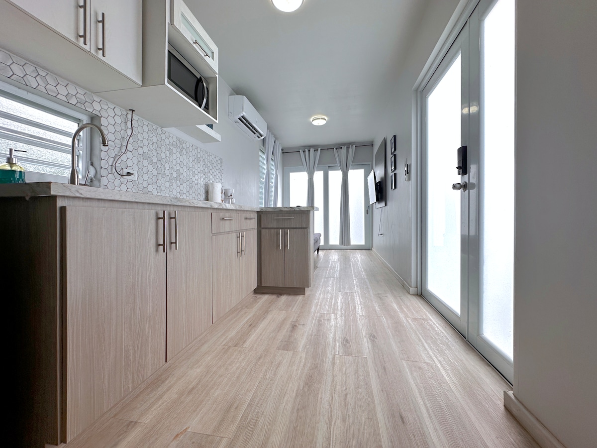 Linda e equipada casa de contêineres localizada em um lugar tranquilo e aconchegante. Contêiner moderno com 2 quartos, sala de estar, cozinha completa, banheiro e varanda grande. Também tem ar condicionado e smart tv. O quarto principal tem uma cama queen size, o segundo quarto tem beliches. Perto das melhores praias de Isabela, como Jobos, Montones, Teodoro e locais de surfe renomados. Variedade de restaurantes e atrações turísticas. A 15 minutos do Aeroporto Rafael Hernandez e dos Centros Comerciais.