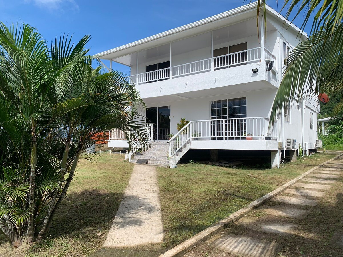 Casa à🏡 beira-mar em Southwest Bay, Providencia. Possui dois quartos com ar condicionado, uma área de estar e jantar iluminada, uma cozinha totalmente equipada, um espaço de lavanderia e um terraço com belas vistas para o Caribe. Perfeito para casais, famílias ou amigos que procuram privacidade, calma e natureza. A poucos passos de praias tranquilas, pontos de mergulho com snorkel, trilhas cênicas e cultura local. Os recursos na ilha são limitados, por isso, aproveite sua estadia com atenção.