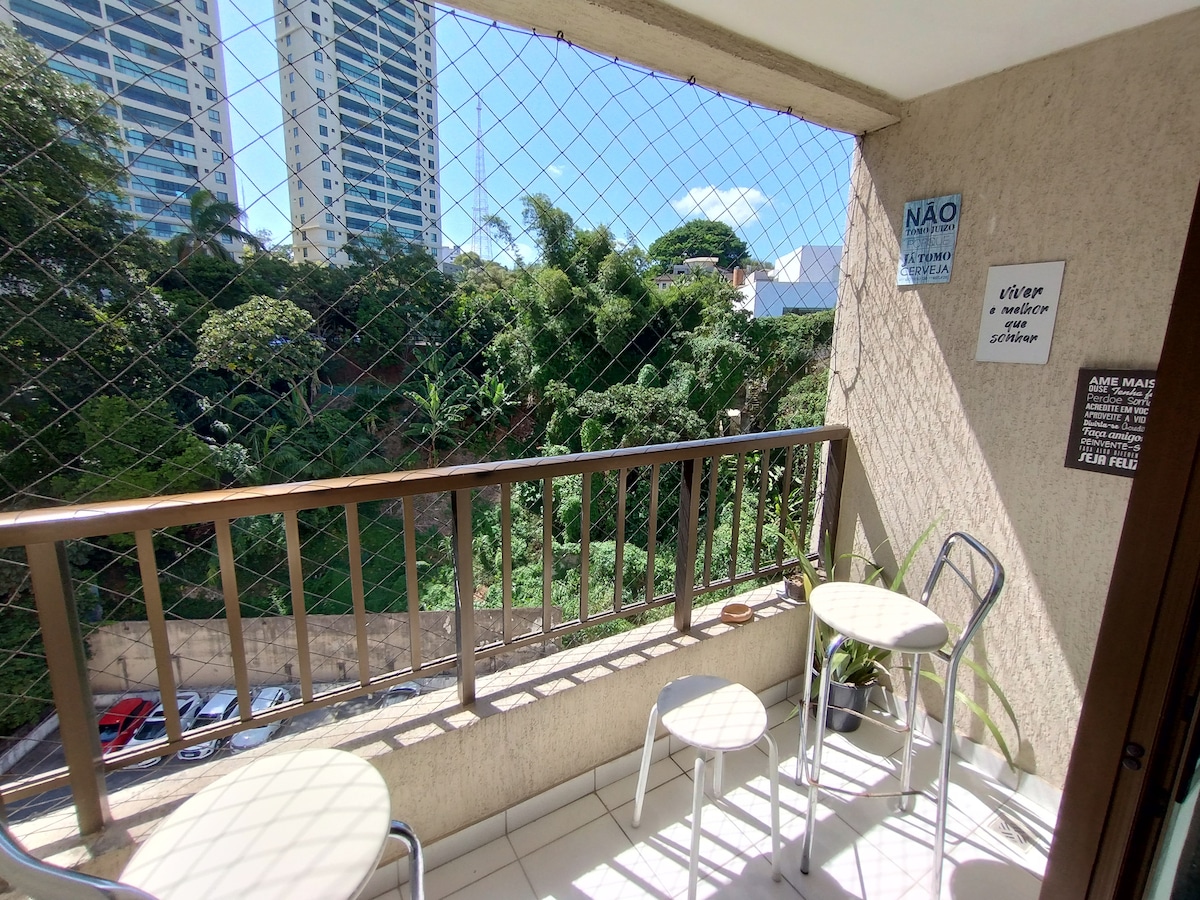 Apartamento aconchegante e muito bem localizado! PERTO DE TUDO - 5 minutos da Praia, 5 minutos até o Centro de Convenções de Salvador e 5 minutos do maior shopping da cidade ( Salvador Shopping). Restaurantes, bares e mercado a alguns passos do local. AMBIENTE SEGURO - Portaria 24 horas - Vaga de estacionamento coberta e dentro do prédio - Sistema de câmeras dentro do condomínio. CONFORTO - Smart Tv na sala e no quarto! Ao lado possui um lindo parque e o mar ao horizonte visto pela janela!