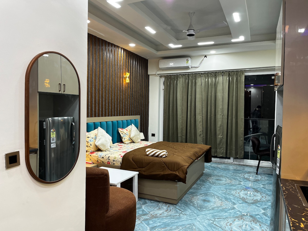 Welcome to our studio Oasis! Immerse yourself in stunning interiors, natural light, and top-notch amenities. Whether you're here to work or unwind, our comfortable bed and workspace ensure a perfect stay. Discover your ideal getaway in a secure community with 24/7 security. Stay worry-free with uninterrupted power backup, and whip up your favorite meals in the well-equipped.