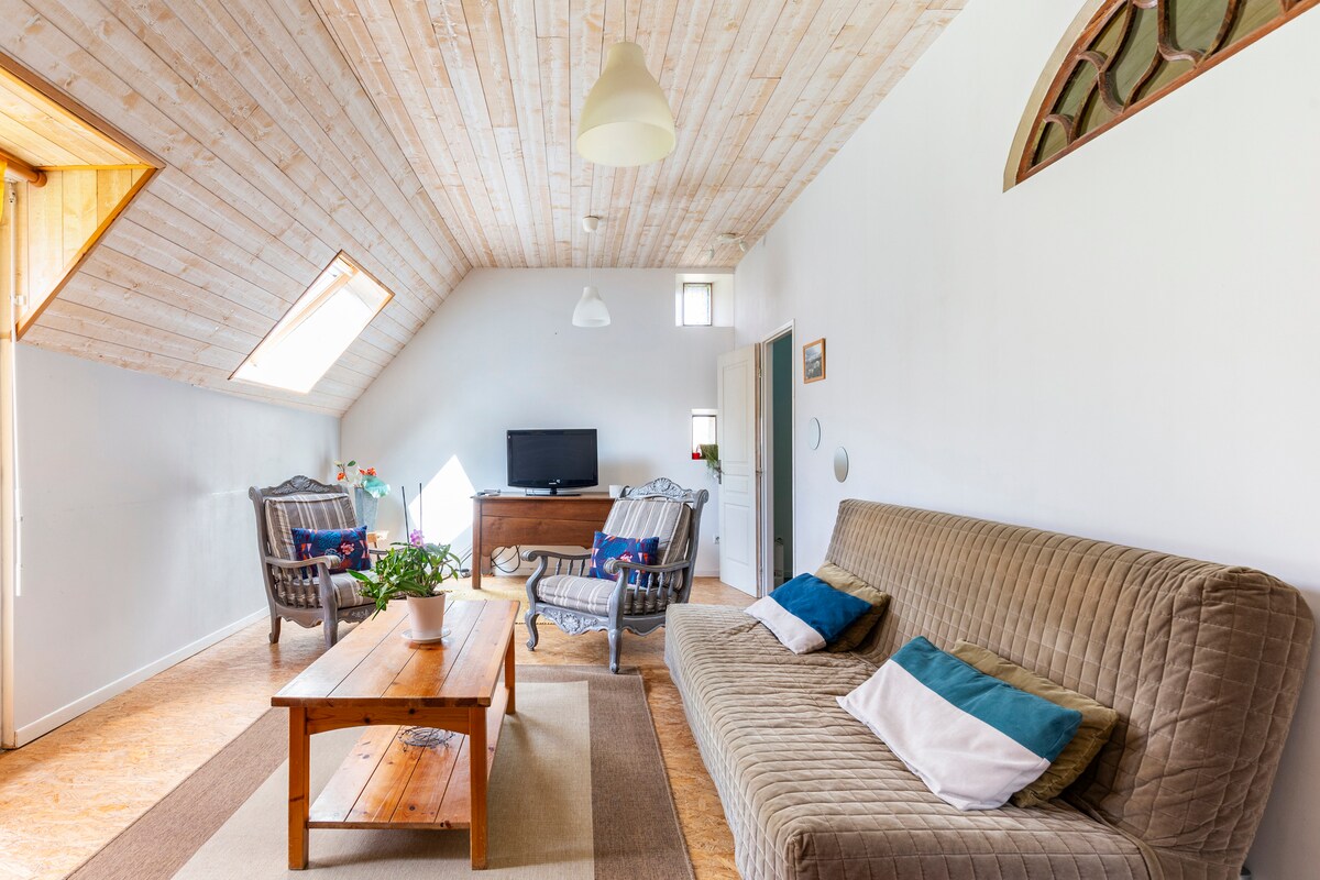 Você vai se divertir neste alojamento confortável. Este grande estúdio aberto é composto por uma cama de casal de 140 cm e um pequeno sofá-cama de 120 cm, ideal para crianças ou uso ocasional. - Grande smart TV de tela plana. -Pequeno aquecedor a pellets que aquece perfeitamente o ambiente. - Banheiro completo. -Cozinha totalmente equipada com forno, micro-ondas, fogão duplo e pia. - Máquina de café (Tassimo) - Barrinha de café da manhã para 4 pessoas.