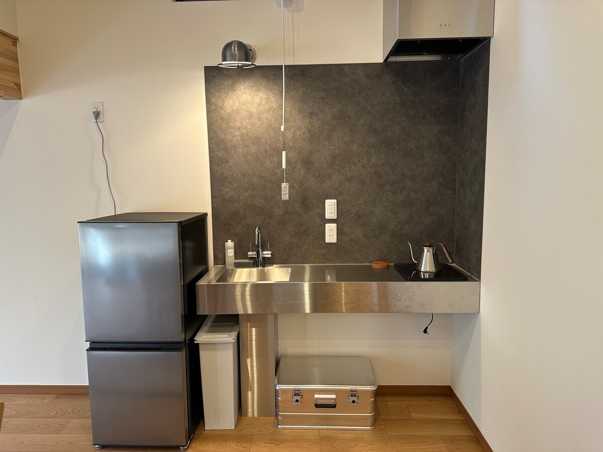 O Imaihama Orange Hills Field Camping está aberto como um prédio de hospedagem, com um plano de estadia simples É um tipo de acomodação que funciona como uma casa de campo privada, para que você e sua família ou amigos possam relaxar. Atualmente não é possível cozinhar dentro das instalações, mas é possível ferver água e preparar churrasco. Há um deck de madeira conectado ao quarto, do lado de fora da grande janela da sala de estar. Você pode relaxar lá quando o tempo estiver bom. Também está equipado com Wi-Fi com segurança aprimorada, tornando-o adequado para trabalho remoto. O fogão para churrasco está disponível para alugar, por isso, informe-nos no momento da reserva (há um custo adicional). Por favor, note que apenas o equipamento será alugado. O quarto está localizado no loft do segundo andar, onde há futons para quatro pessoas, mas lembre-se de que há apenas um quarto. A instalação fica em uma colina tranquila chamada Orange Hill, um pouco adentro da estrada nacional 135. É conveniente, pois o carro pode ser estacionado em frente ao prédio. Todos os locais com chalés são exclusivos para os hóspedes, para que você possa relaxar! A praia de Imaihama fica a 5 minutos de carro