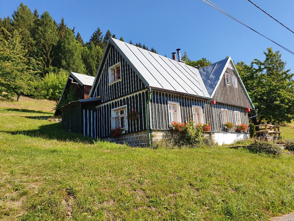 Esta casa de campo decorada com charme, pré-aquecida no inverno, com três quartos espaçosos - um com lareira - todos com aquecimento elétrico - oferece tranquilidade e é um lugar ideal para famílias com crianças ou amantes da arte e da natureza. Está localizado perto de cidades montanhosas pitorescas (Jilemnice, Semily, Vrchlabí) e inúmeras estâncias de esqui, incluindo Sněžka, o pico mais alto da República Tcheca. A 30 km do local está a Reserva Natural Český ráj, que oferece uma variedade de belas experiências de trekking, escalada e rafting.