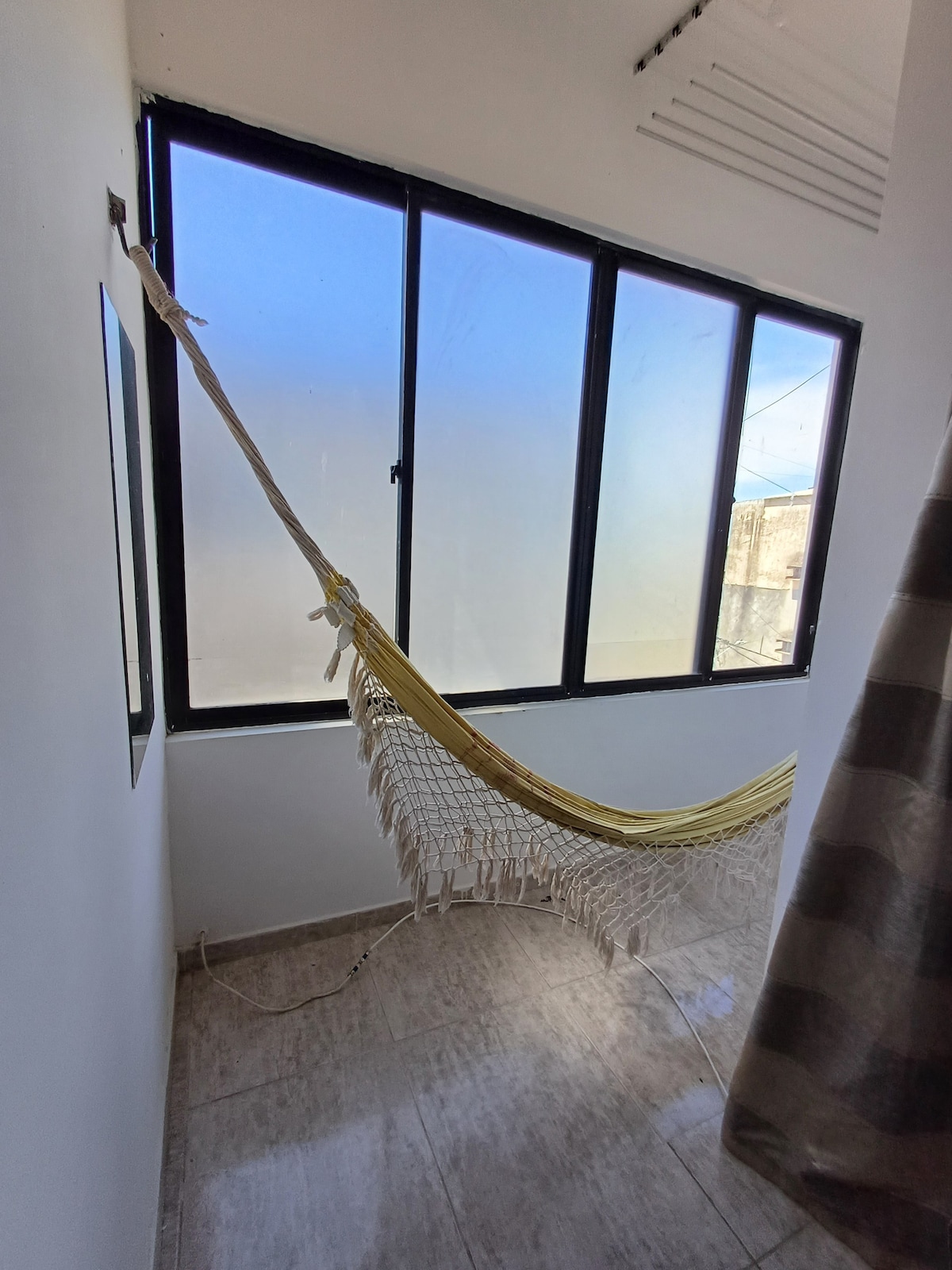 Espaço bem equipado com suíte. Possui ar condicionado, tv smart,frigobar,cama de casal e escrivaninha. Cozinha externa compartilhada, equipada com fogão, geladeira, mesa, cafeteira, sanduicheira, micro-ondas, dentre outros. Tem churrasqueira com área aberta para lazer. A cozinha é bem equipada com o necessário para preparar suas refeições. O ambiente é tranquilo, familiar e muito bem localizado. Próximo ao aeroporto dos Guararapes, centro da cidade, cidade universitária, Boa Viagem, Olinda...