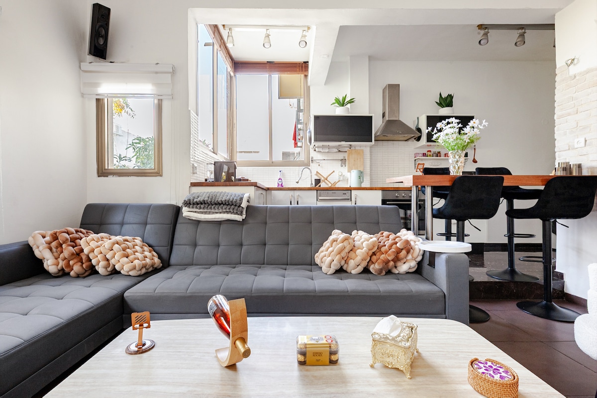 This apartment is newly furnished with modern, electrical equipment and is situated in the vibrant centre in Dizengoff St. There are lots of stores, restaurants, coffee places and it's only 5 min away from the beach. . My place is good for couples, solo adventurers, business travelers, and families (with kids).