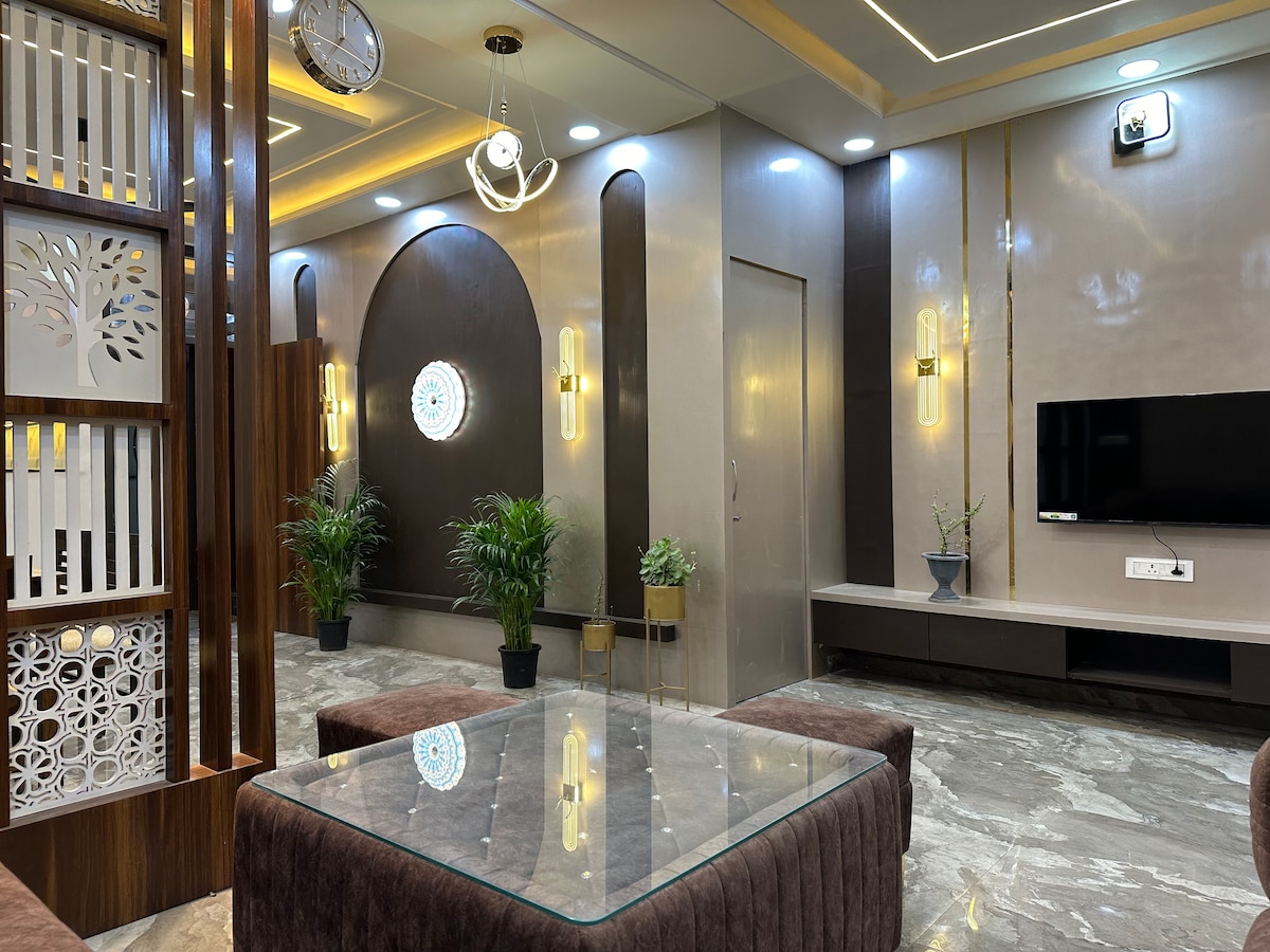 Welcome to our modern duplex! Three cozy bedrooms, each with a private washroom, await you. The kitchen is fully equipped with a refrigerator, microwave, RO water purifier, gas stove, crockery, etc. House also has a 43-inch Android Smart TV, 6-seater dining table, 12-seater sofa, puja room, washing machine. Step outside to two large terraces and a large balcony for fresh air and stunning views. Whether for business or leisure, make yourself at home in this stylish and comfortable Airbnb!